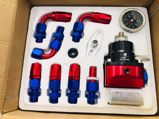Universal Adjustable EFI Aluminum Fuel Pressure Regulator Kit w/ 0-160 psi Gauge AN6-6AN Fuel Line Hose Fittings Blue & Red