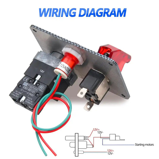 12V Racing Ignition Switch Panel with Engine Start Button & Toggle – Carbon Fiber Look